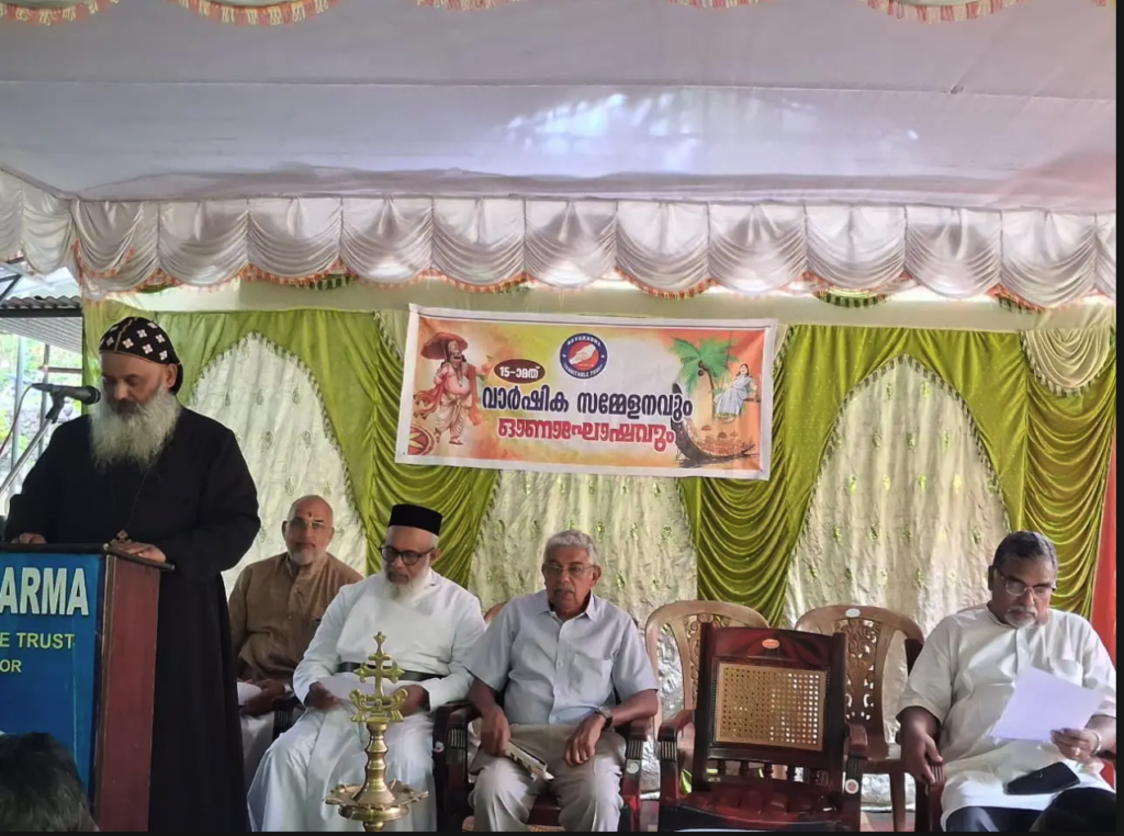The public meeting, which was presided over by Shri George Varghese, retired state tax officer, began with the prayer song of Athullya Krishnan and Divya Krishnan, which offered a good start for the meeting. Managing Trustee, Mrs Sosamma P. Thomas warmly welcomed the audience. After the presidential address , Rev Fr Anish K Sam, secretary to the supreme head of Orthodox Sabha ie the Catholicos of Orthodox Sabha, inaugurated the meeting by lighting the lamp. Smt Annie Kuruvilla, Secretary to the Trust presented the report. After that Rev. Fr. Paulose Ninan, Vicar of St.Thomas Orthodox church, Pyngana, Mundakkayam rendered the blessings speech, Rev Fr. Kurian Scariah, Vicar of St.Paul’s orthodox church, Nedumavu greeted the audience, inaugurated the distribution of ‘Onakodi’ and Rev Fr. Markose Markose, Vicar St.Mary’s Orthodox Church, Chettadom, blessed the occasion and inaugurated the distribution of ‘Ona kit’. After that Smt Shafy Sajeev, member Ponkkunnam Grama Panchayath greeted the audience, congratulated the Navakarma family students who passed 10th and 12th standards ,and presented awards to them. Smt Rachel John gave the vote of thanks. The songs of Amaya Susan Aji and Anaya Susan Aji added to the integrity of the meeting.